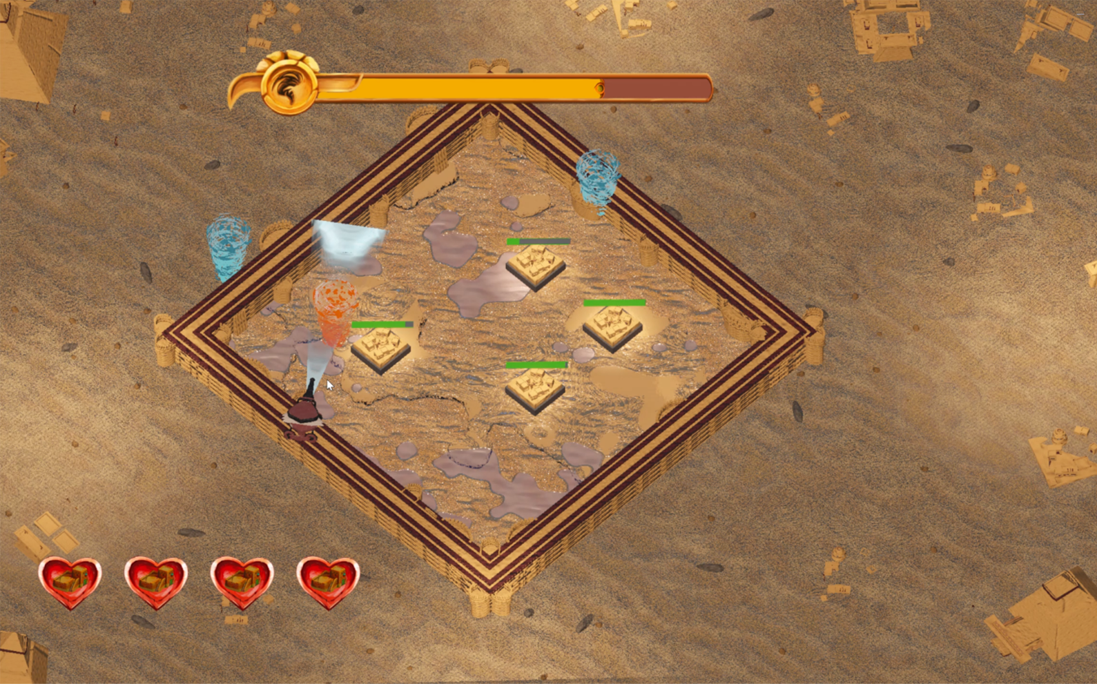 Help Osiris, the God of life, protect your village against Seth, the God of storms, who summons waves of tornadoes. Deflect the tornadoes path by blowing on them so they don’t hit your structures.